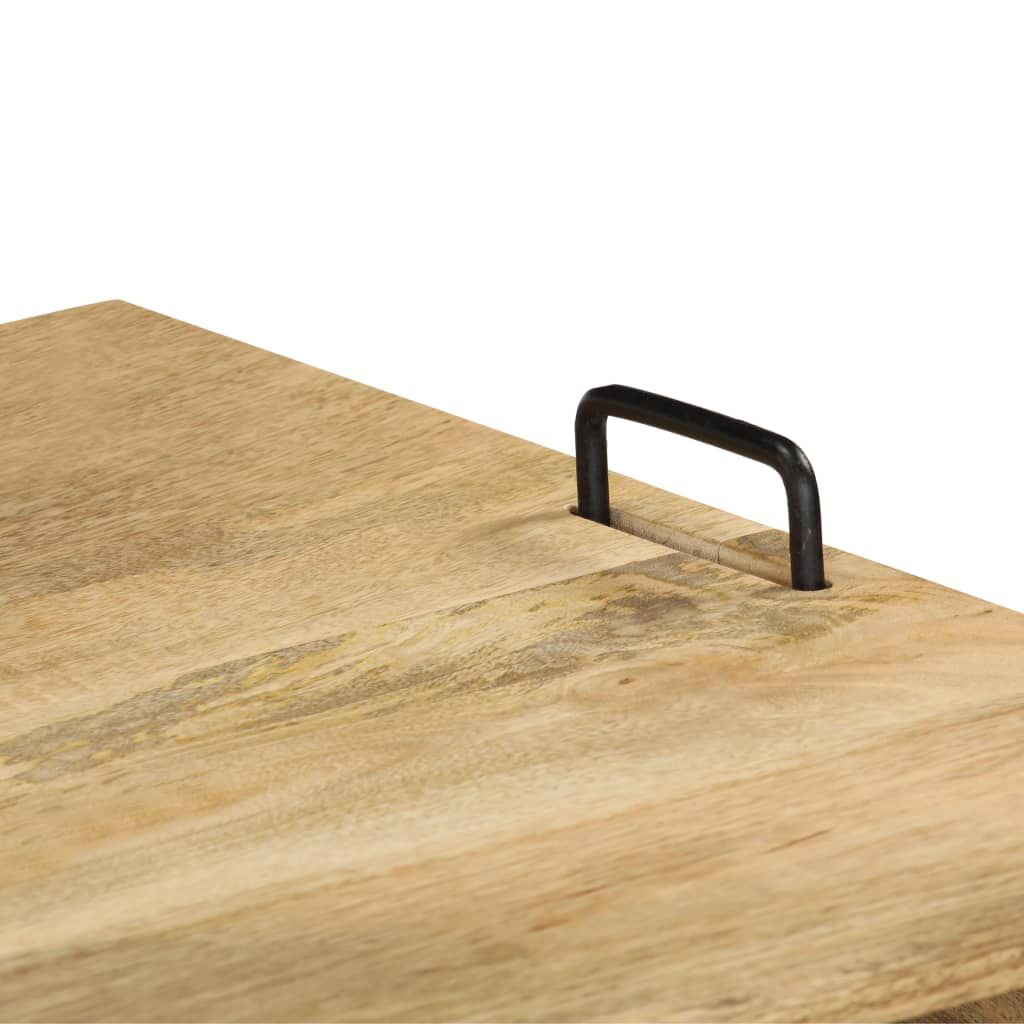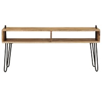 $147.86The wooden TV stand will make a timeless addition to your living room decor. Constructed from solid mango wood and sturdy steel frames, the HiFi cabinet is highly stable and durable. The top is ideal for placing your TV or stereo systems as well as some decorative items like vases and potted plants. The shelf provides extra storage space for keeping your DVD players, game consoles, streaming devices, media carriers, etc. neatly organised. The steel frames add to the stand's sturdiness as well as to its industrial style. Every step of the construction process is carried out with the greatest care, be it polishing and lacquering. The TV stand is easy to assemble. Important note: The colours and grains of the wood may vary from piece to piece, making each piece unique and slightly different from the next. The delivery is random, ensuring the exclusivity and individuality of your product.