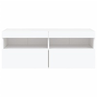 $114.34This TV wall cabinet is the perfect solution for your living space to maximise space and keep the floor areas uncluttered. Durable material: The engineered wood is of exceptional quality with a smooth surface and also features strength, stability and resistance to moisture.RGB LED lights: The wall media cabinet is equipped with vibrant RGB LED lights. With various customisable menus, you can effortlessly change the colour of the lights and even set them to adjust automatically. These LED lights not only enhance the contemporary look of the floating TV unit but also add to its trendy appeal.Ample storage space: The TV wall unit offers ample space to keep your small items like books, DVDs, and magazines neatly organized and within reach.Wall-mounted design: This LED cabinet can be wall-mounted to add extra storage space. That way, you can maximise your floor space and keep the area clean. Good to know:Screws and plugs for inside the wall are not included. We advise to find and use screws and plugs suitable specifically for your walls. If you're not sure, you can consult with a professional. Please read and follow each step of the instructions.The product has a USB connector that requires a certified 5V USB power source (not included).