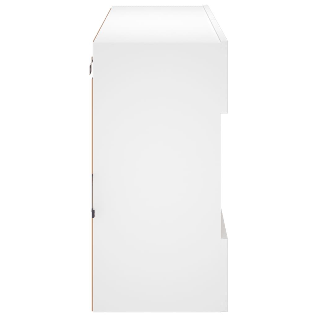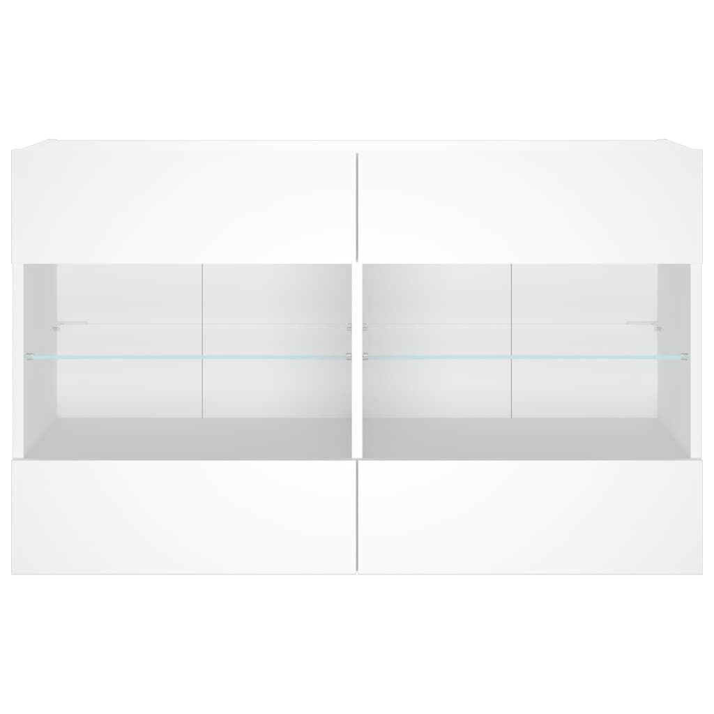 $169.19This TV wall cabinet is the perfect solution for your living space to maximise space and keep the floor areas uncluttered. Durable material: The engineered wood is of exceptional quality with a smooth surface and also features strength, stability and resistance to moisture.RGB LED lights: The wall media cabinet is equipped with vibrant RGB LED lights. With various customisable menus, you can effortlessly change the colour of the lights and even set them to adjust automatically. These LED lights not only enhance the contemporary look of the floating TV unit but also add to its trendy appeal.Ample storage space: The TV wall unit has 2 glass shelves and 4 compartments behind the doors that offer ample space to keep your small items like books, DVDs, and magazines neatly organized and within reach.Wall-mounted design: This LED cabinet can be wall-mounted to add extra storage space. That way, you can maximise your floor space and keep the area clean. Good to know:Screws and plugs for inside the wall are not included. We advise to find and use screws and plugs suitable specifically for your walls. If you're not sure, you can consult with a professional. Please read and follow each step of the instructions.The product has a USB connector that requires a certified 5V USB power source (not included).
