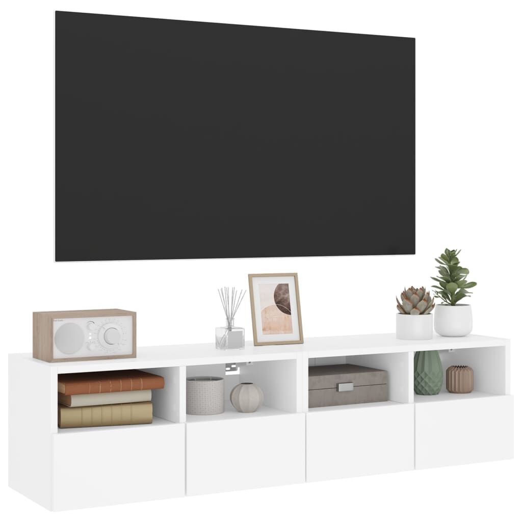$74.35These TV wall cabinets are the perfect solution for your living space to maximise space and keep the floor areas uncluttered. Durable material: The engineered wood is of exceptional quality with a smooth surface and also features strength, stability and resistance to moisture.Ample storage space: The floating TV unit has 2 shelves and 2 compartments behind the door to keep your small items like books, DVDs, and magazines neatly organized and within reach.Wall-mounted design: This wall media unit can be wall-mounted to add extra storage space. That way, you can maximise your floor space and keep the area clean. Good to know:Screws and plugs for inside the wall are not included. We advise to find and use screws and plugs suitable specifically for your walls. If you're not sure, you can consult with a professional. Please read and follow each step of the instructions.