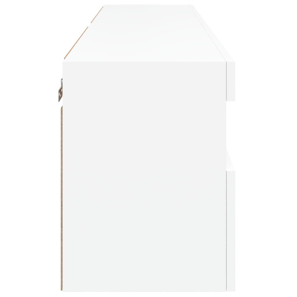 $160.84These TV wall cabinets are the perfect solution for your living space to maximise space and keep the floor areas uncluttered. Durable material: The engineered wood is of exceptional quality with a smooth surface and also features strength, stability and resistance to moisture.RGB LED lights: The wall media cabinet is equipped with vibrant RGB LED lights. With various customisable menus, you can effortlessly change the colour of the lights and even set them to adjust automatically. These LED lights not only enhance the contemporary look of the floating TV unit but also add to its trendy appeal.Ample storage space: The TV wall unit offers ample space to keep your small items like books, DVDs, and magazines neatly organized and within reach.Versatile: The cabinet is multifunctional and can be used as a TV wall cabinet or a wall-mounted bedside cabinet. You can also combine it with other cabinets to create a stunning living wall.Wall-mounted design: This LED cabinet can be wall-mounted to add extra storage space. That way, you can maximise your floor space and keep the area clean. Good to know:Screws and plugs for inside the wall are not included. We advise to find and use screws and plugs suitable specifically for your walls. If you're not sure, you can consult with a professional. Please read and follow each step of the instructions.The product has a USB connector that requires a certified 5V USB power source (not included).