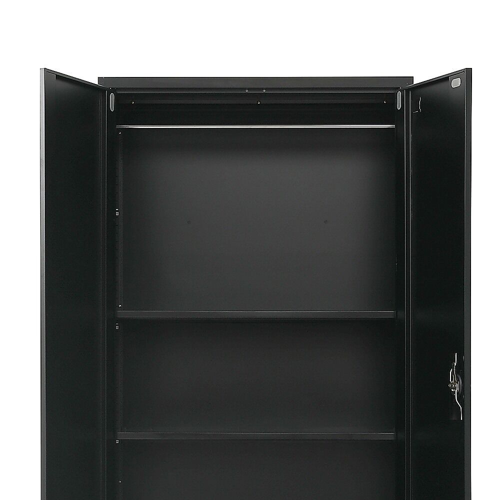 This two-door metal wardrobe made of cold-rolled steel of 0.6mm thickness, painted with special electrostatic paint for maximum resistance to moisture and corrosion.