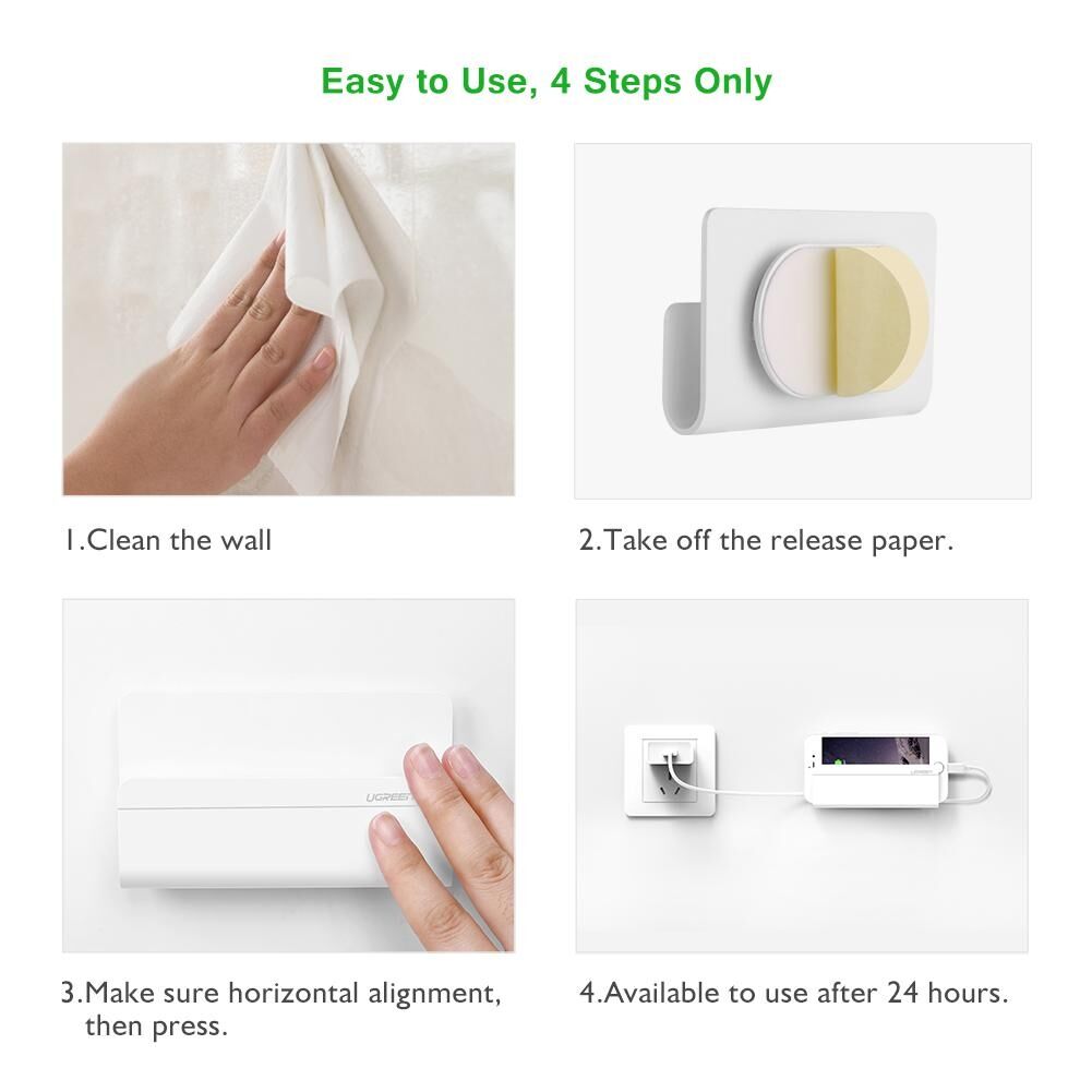 Ugreen Wall Mount Phone Holder. Ugreen 30394 smartphone wall holder can give your phone a safe dock while charging. With a wide range of applications, this wall mount for phone can be used on smooth and even wallpaper, lime wall, tile, stainless steel, glass, wooden and metal surface.