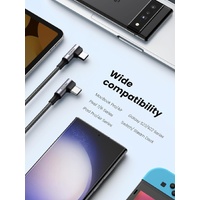UGREEN USB-C to USB-C cable with an innovative 90 degrees L design, is much more convenient and more comfortable for playing games, watching videos, reading e-books when you lie on the couch or bed while charging. (Max thickness of phone case allowed is 2mm)(Not support video output.)