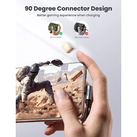 Right Angle USB C:UGREEN USB-C cable with an innovative 90 degrees L design. It's more convenient and more comfortable for playing games, watching videos, reading e-books when you lie on the couch or bed while charging. Safe and Quick Charge:This USB C to USB A cable supports Quick Charge 2.0 and 3.0, with max output up to 3A. It is fully compatible with Samsung Adaptive Fast Charging AFC and Huawei Fast Charging Protocol FCP, providing 5V 3A, 9V 2A or 12V 1.5A fast charge. With a built-in 56K resistor, this type c charger guarantees reliable conductivity and charging, protecting your cell phones from damage due to excessive current.