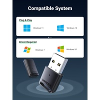 UGREEN USB Bluetooth Adapter for PC is compatible with Windows 11, 10, 8.1, 7 32/64 bit and offers bluetooth function to Headphones Printer Speaker Mouse Keyboard PS4/ Xbox Controllers. (Note: Only compatible with the later version of PS4/ Xbox Controllers.)