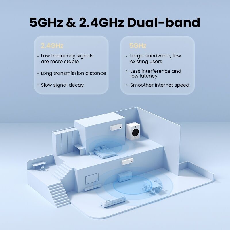 UGREEN AC650 USB Wifi Adapter supports both 2.4GHz - up to 200Mbps and 5GHz bands - up to 433Mbps at the same time, and can switch automatically in different situations. So that the network can always be fast and stable.