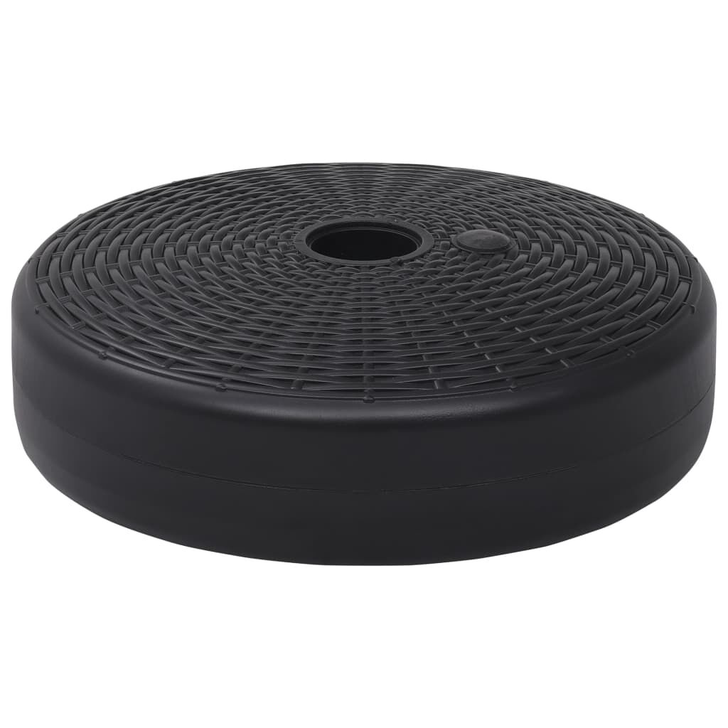 $50.39This umbrella base with rattan pattern is designed to be filled with water or sand for ballast. It serves as a firm and sturdy base for holding your umbrella. The parasol stand has a water inlet and a water outlet with caps. It can be filled with 24 L of water or 28 kg of sand. Without the filler, the umbrella base is light in weight, which makes it easy to carry and store thanks to the handle design. With our umbrella base, your umbrella will stay put!