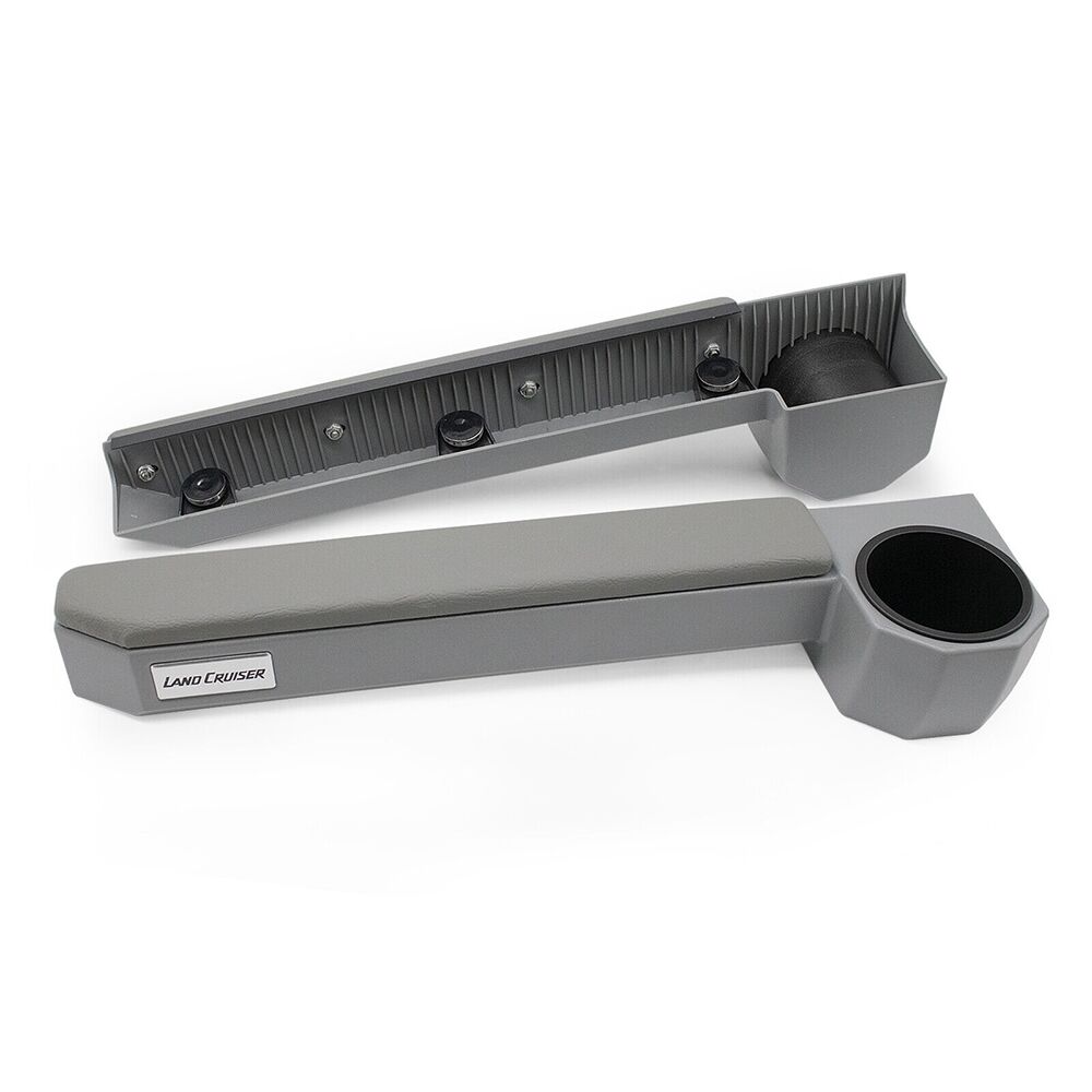 These arm rest cups holders fit the 70 series Toyota Land-cruiser, they accommodate both large and small diameter cups/bottles snugly with a removable rubber seal.