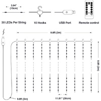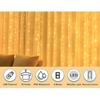 USB Powered 300 LED Curtain String Light with 8 Modes and Remote Control for Bedroom Party Wedding Decorations