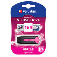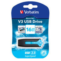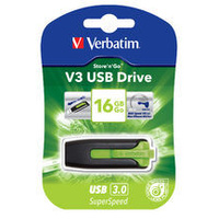 $27.89Featuring a USB 3.0 interface for SuperSpeed data transfer, the Store \'n\' Go V3 USB Drive is up to 10 times faster than USB 2.0* making it faster for transferring and saving larger file sizes of all types. The design of the V3 USB Drive also ensures that the USB connectors are protected featuring a \'slide and lock\' mechanism. This locks into position when using the drive and retracts back into a closed position to protect the connector when not in use. Simple and easy to use, just plug into any USB 3.0 port (also compatible with USB 2.0) and drag and drop your folders and files. Capacity: 16GB Read Speed: Up to 60MB/sec (USB 3.0 host system) Write Speed: Up to 12MB/Sec (USB 3.0 host system) Product Number: 49172 Features and Benefits USB 3.0 SuperSpeed Interface. Slide and Lock\' mechanism protects the USB connector when not in use. Compact, stylish design. Verbatim 2 Year Limited Warranty.