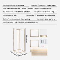 Assembly of this wedding flower stand is a breeze and requires no tools. Simply follow these 4 steps: Step 1: Start by installing the two square frames. Step 2: Assemble the two smaller metal rods one by one. Step 3: Connect the bottom square frame to the columns. Step 4: Connect the top square frame to the columns. You can complete the assembly in just a few minutes.
