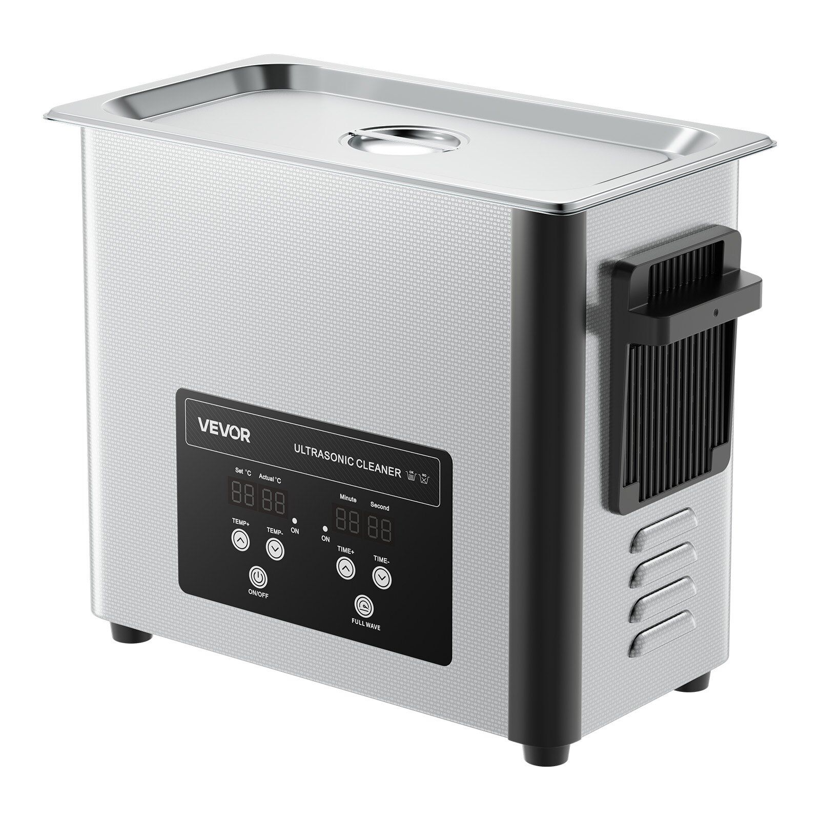 The sonic cleaner features a corrosion-resistant stainless steel basket and inner tank, while the basket avoids scratches. Upgraded handle makes full-tank transport easy and the digital display ensures simple, precise operation