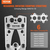 This crimping tool is ideal for crimping copper and aluminum battery cables, with 6 crimping sizes and the crimping range is AWG10-1/0. The hexagonal rotating dies are processed by wire cutting, making the crimping more precise.
