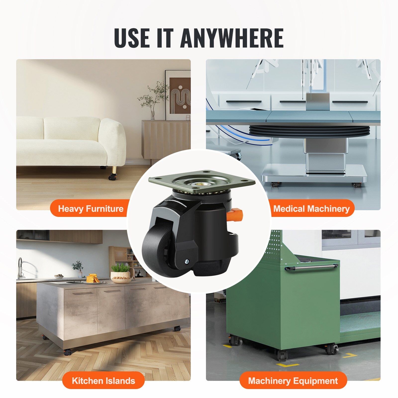 Say goodbye to wobbly tables! Our easy-twist handle lets you adjust each wheel's height for a super-even setup. These caster wheels aren't just height-adjustable; they're life-adjustable.