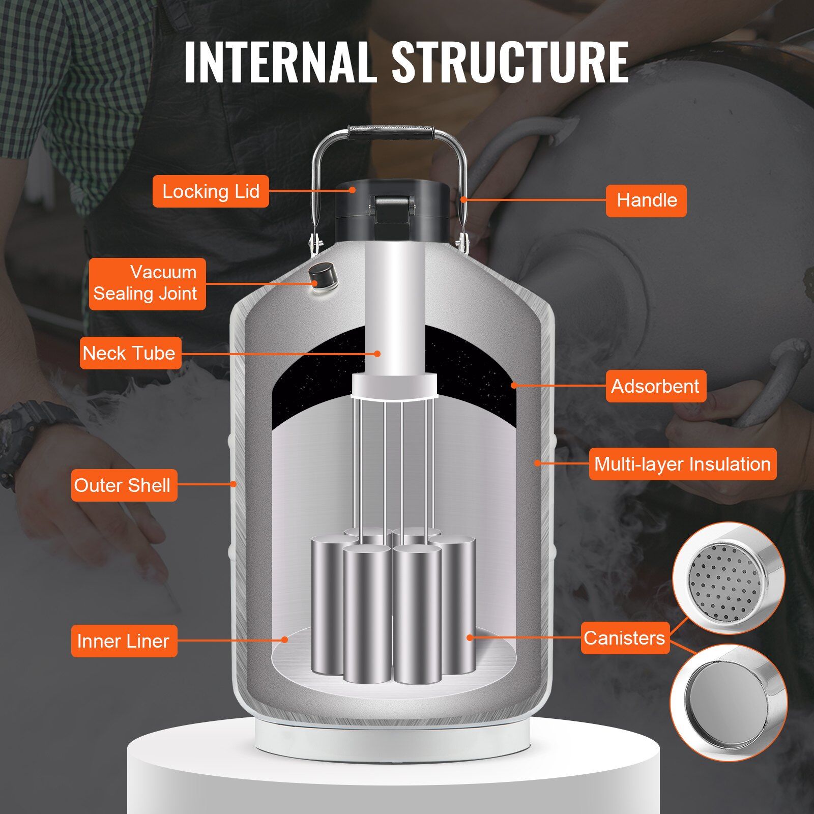 Surrounding the liquid nitrogen container with a multi-layer insulation structure and special gas adsorbents creates an excellent vacuum storage space. This minimizes heat transfer, maintaining a stable low-temperature environment inside the container and extending the storage time of samples.