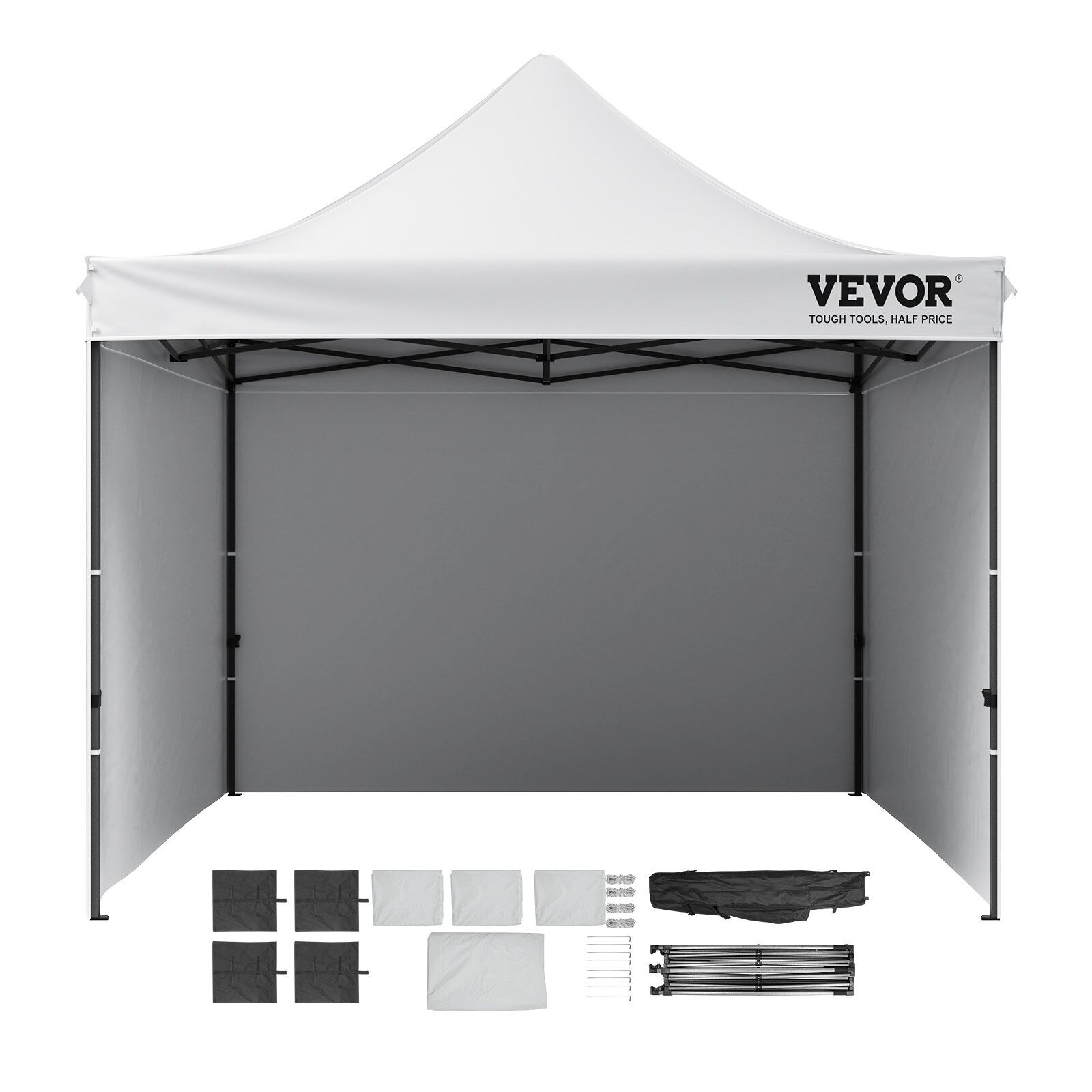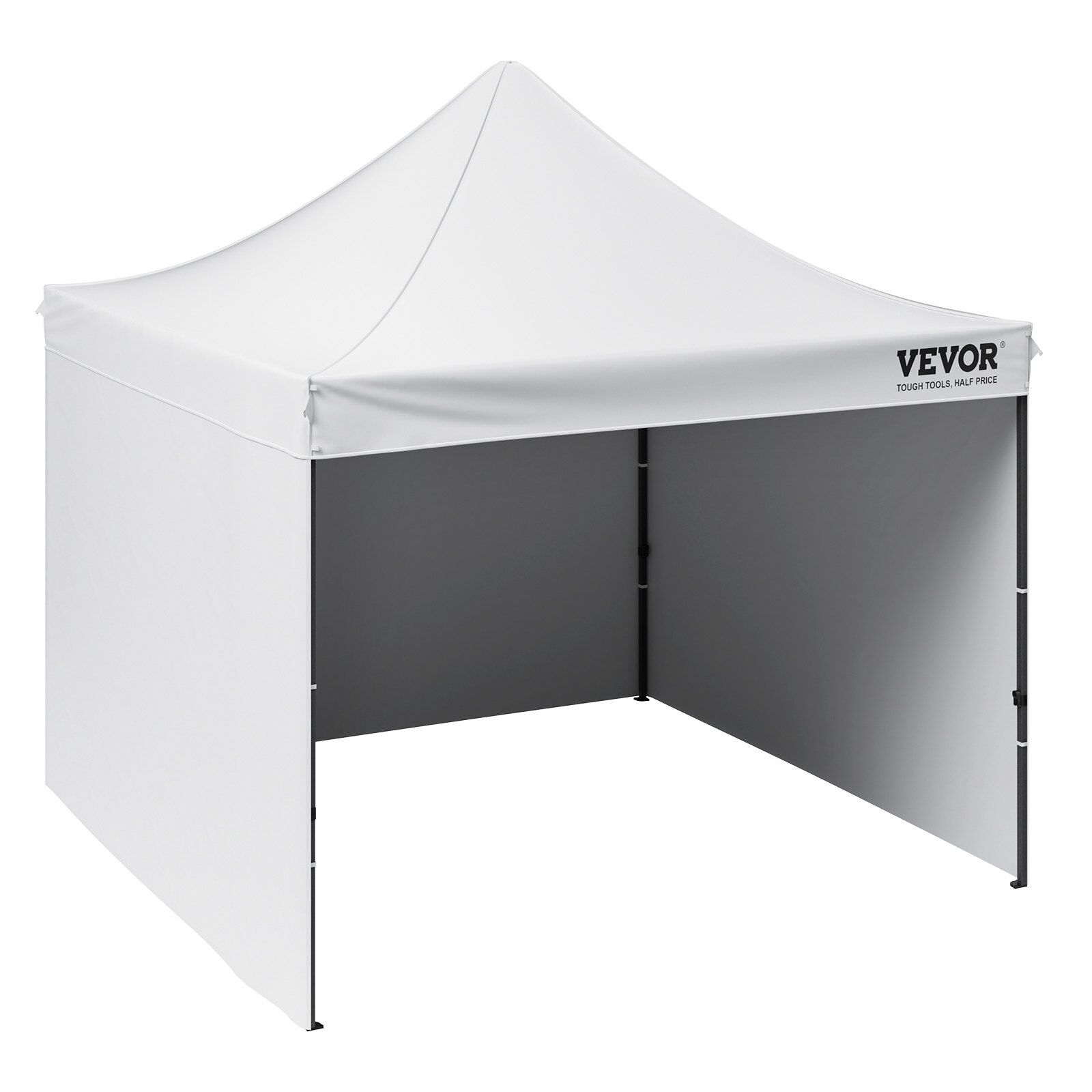 This 10x10 pop up canopy tent can be assembled in one minute, providing a temporary gathering place of 100 square feet. With three adjustable heights and a maximum internal height of over 9 ft, it offers a spacious standing room. This canopy with sidewalls comfortably accommodates 6-8 people, providing sun shade for a comfortable gathering.