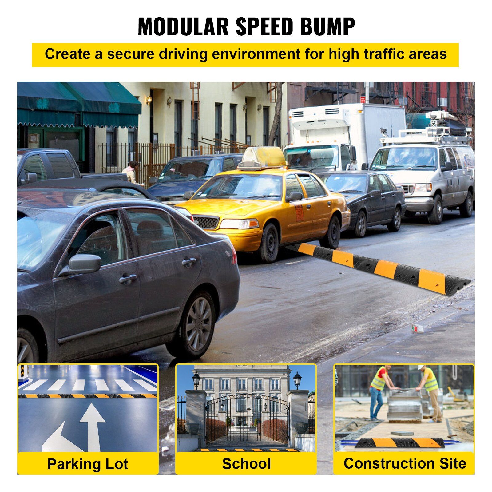 Amount: 2 PCs; Product size: 40.2"L x 11.8"W x 2.4"H/ 102 x 30 x 6 cm; Single channel size:1.4"W x 1.2"H/ 3.5 x 3 cm; 2 channels on the bottom for cable protection or drainage. The speed bump is ideal for creating a secure driving environment for roads, parking lots, and more.
