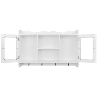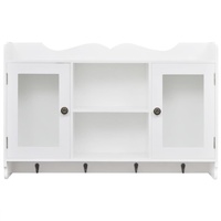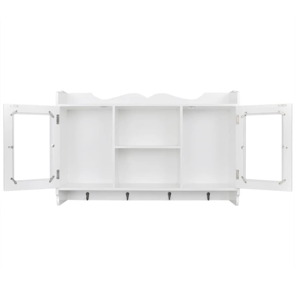 $130.49This display cabinet will become the focal point of any room. With an invisible mounting system, the display cabinet is easy to install, and serves as an ideal place to store items like trophies, books, collectables, ornaments, etc. The hanging cabinet is made of high-quality painted MDF. It has two glass panel doors to keep the items inside dust free. With 4 hooks at the bottom of the cabinet, you can hang your coats, bags, caps, keys, etc. This display cabinet will suit any decor and turn an empty wall into a feature!