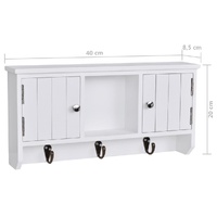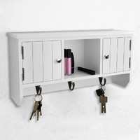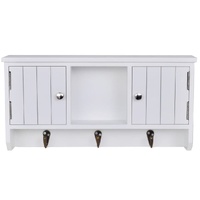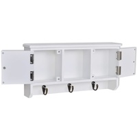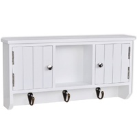 $59.39This key cabinet in antique white, with a simple yet elegant design, will make a decorative as well as functional addition to your home decor, as you can use it to keep your keys and other daily essentials organised. The wall cabinet has three metal hooks for placing keys. The two compartments with doors and the middle shelf provide plenty of space for storing wallets, mobile phones, sunglasses, jewelry, or other accessories. The MDF construction makes the cabinet strong and durable. The cabinet can be steadily mounted on the wall. The white paint finish makes it easy to clean with a damp cloth.
