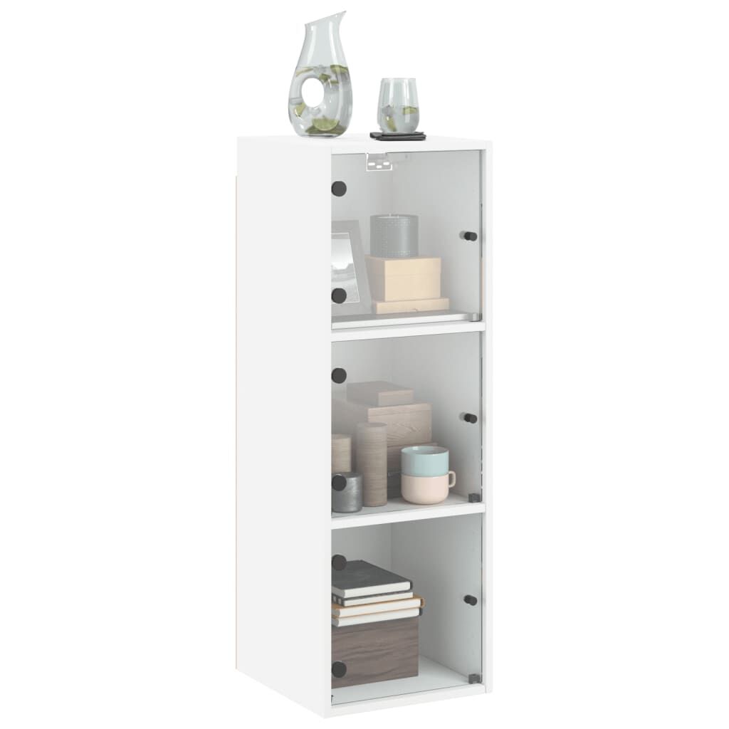 $92.69This wall cabinet is stunning and elegant. Not only is it an excellent solution for your chores and decorations, but it is also the perfect decoration for your empty walls and turns them into designer walls. Durable material: The engineered wood is of exceptional quality with smooth surface and also features strength, stability and resistance to moisture.Ample storage space: The hanging cabinet boasts compartments, enabling you to place items such as books, and keep them neatly organised and within reach.Versatile design: You can mount the storage cabinet on the workplace wall for convenient storage of tools or other miscellaneous items. Also, it transforms an empty wall into a design feature.Wall-mounted function: The storage cabinet can be wall-mounted to add extra storage space. That way, you can maximise your floor space and keep the area clean.Practical glass doors: Keep your space clutter-free by hiding small essentials behind the doors of the wall unit. In addition, the glass doors allow you to see inside the floating cabinet to display items beautifully. Good to know:Screws and plugs for inside the wall are not included. We advise to find and use screws and plugs suitable specifically for your walls. If you're not sure, you can consult with a professional. Please read and follow each step of the instructions.