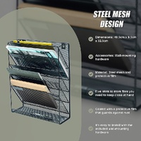 Its steel mesh design in black works well with any office décor. It's easy to install with the included wall-mounting hardware.