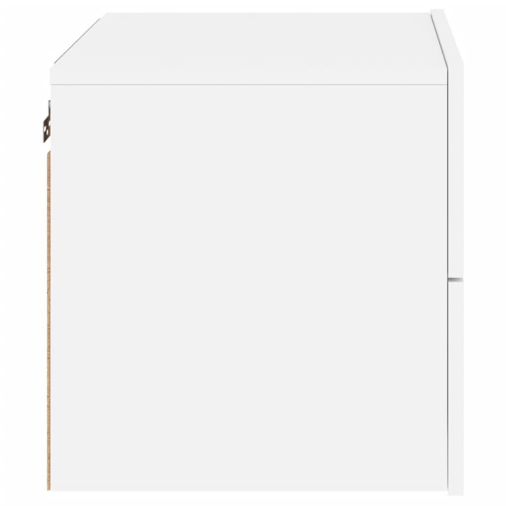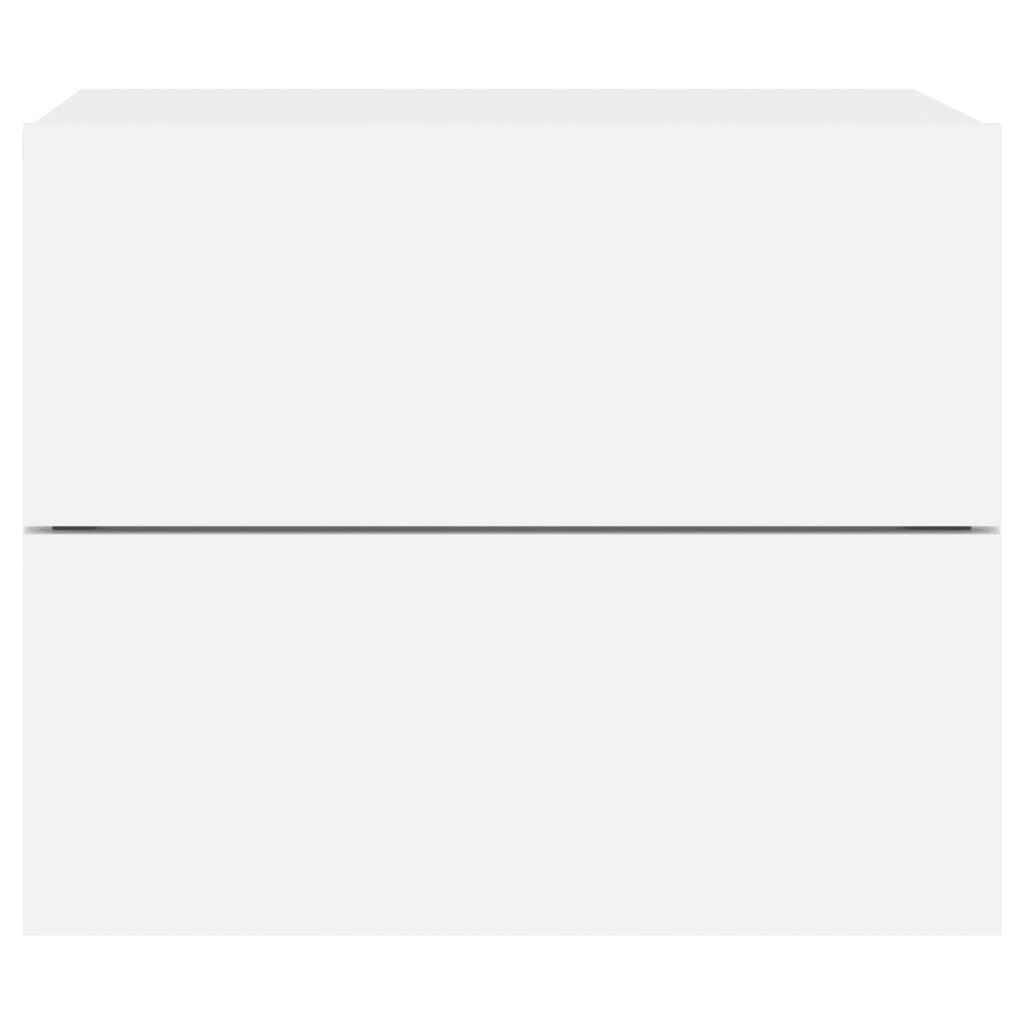 These wall-mounted bedside cabinets with LED lights are the perfect solution for your living space to maximise space and keep the floor areas clean. Durable material: The engineered wood is of exceptional quality with smooth surface and also features strength, stability and resistance to moisture. Made of engineered wood, the wall hung bedside cabinet is easy-to-clean.RGB LED lights: The floating bedside cabinet is equipped with vibrant RGB LED lights. With various customisable menus, you can effortlessly change the colour of the lights and even set them to adjust automatically. These LED lights not only enhance the contemporary look of the cabinet but also add to its trendy appeal.Wall-mounted design: This floating bedside unit can be wall-mounted to add extra storage space. That way, you can maximise your floor space and keep the area clean.Multifunctional cabinet: The bedside wall cabinet serves as the ideal place to put items such as books, collectables, ornaments, and more. It transforms an empty wall into a design feature. Good to know:Screws and plugs for inside the wall are not included. We advise to find and use screws and plugs suitable specifically for your walls. If you're not sure, you can consult with a professional. Please read and follow each step of the instructions.The product has a USB connector that requires a certified 5V USB power source (not included).