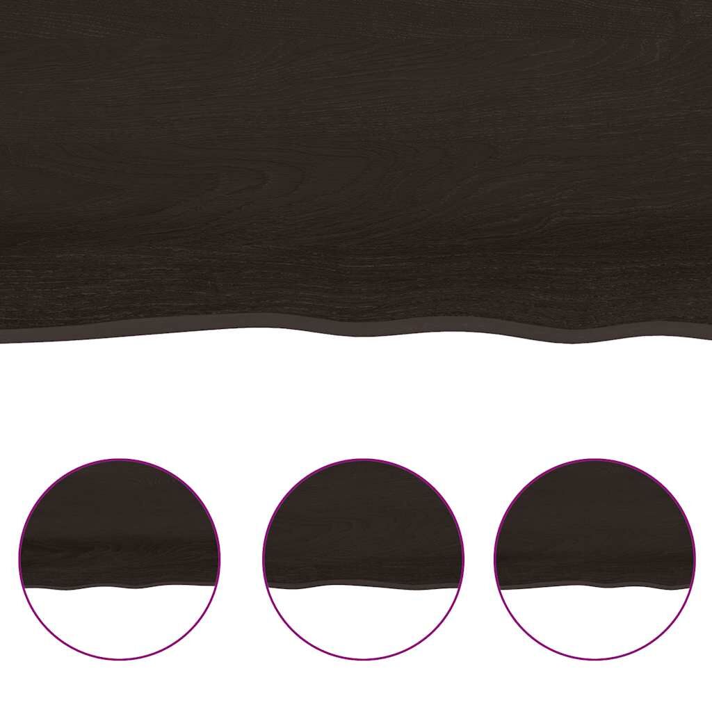 Do you need more storage options but don't have any spare space? This wall shelf in rustic style is the perfect solution. Durable construction: The wall shelf is made of solid oak wood, which is a beautiful natural material. Oak wood has a medium brown colour and a dense grain, contributing to its unique look. Due to the hinge design, it can be folded and stored in narrow spaces.Versatile applications: Besides a shelf, this storage shelf can be combined with different bases according to your needs. It can be used as a bathroom top, cabinet top, desk top, table top etc.Treated surface: The wooden shelf has been treated with dark paint so it is ready for use as an additional finish is not required.Handmade with live edge: This shelf board is handmade with a live edge. Due to that the knots, cracks, slightly curved shapes, and colour tones are part of the oak wood, every piece of shelf has its own unique character to display. The delivery is random. Good to know:As a natural product, wood may show knots and imperfections that we fill with black fillings to ensure a smooth appearance.