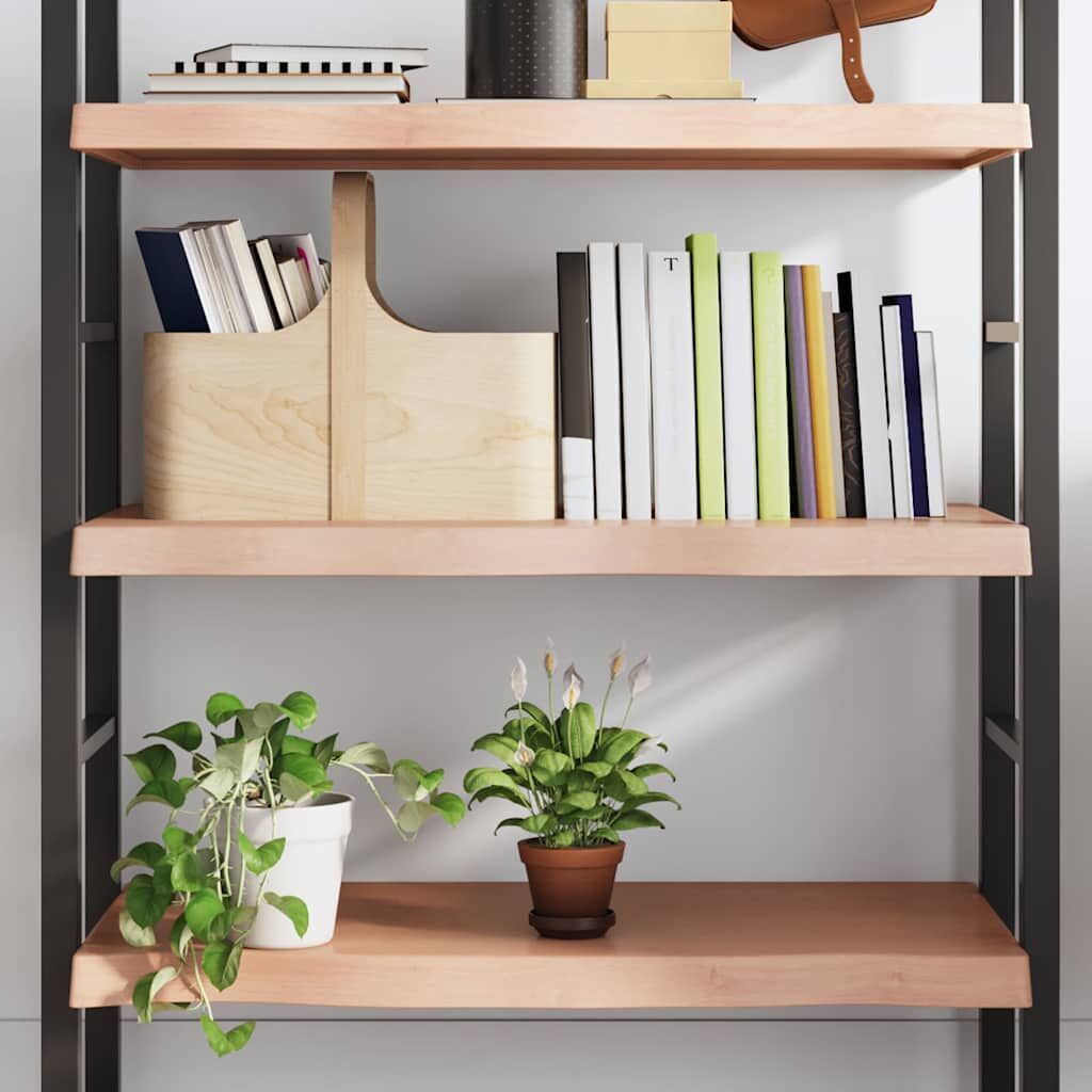$111.59Do you need more storage options but don't have any spare space? This wall shelf in rustic style is the perfect solution. Durable construction: The wall shelf is made of solid oak wood, which is a beautiful natural material. Oak wood has a medium brown colour and a dense grain, contributing to its unique look.Versatile applications: Besides a shelf, this storage shelf can be combined with different bases according to your needs. It can be used as a bathroom top, cabinet top, desk top, table top etc.Treated surface: The wooden shelf has been varnished so it is ready for use as an additional finish is not required.Handmade with live edge: This shelf board is handmade with a live edge. Due to that the knots, cracks, slightly curved shapes, and colour tones are part of the oak wood, every piece of shelf has its own unique character to display. The delivery is random, ensuring the exclusivity and individuality of your product. Good to know:As a natural product, wood may show knots and imperfections that we fill with black fillings to ensure a smooth appearance.