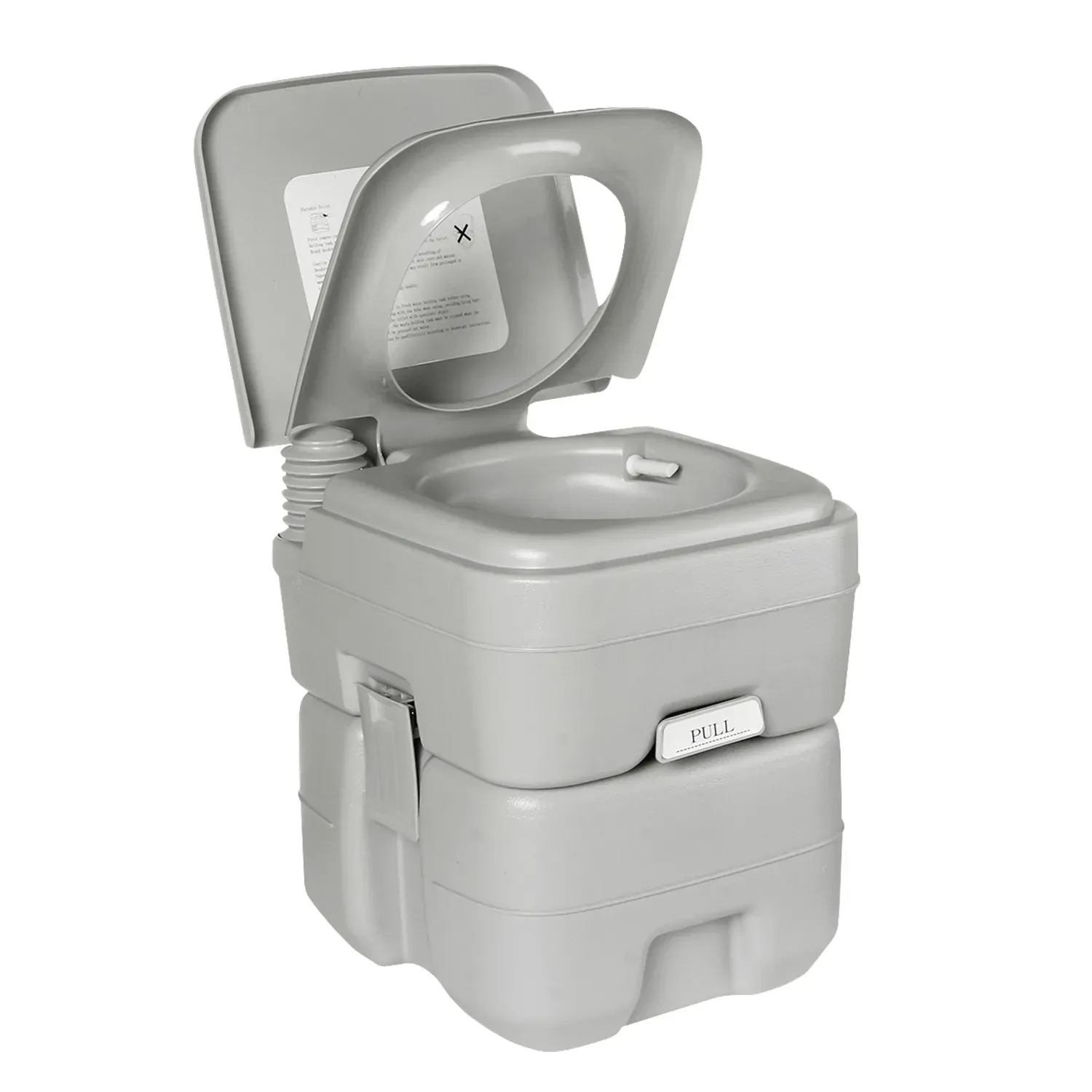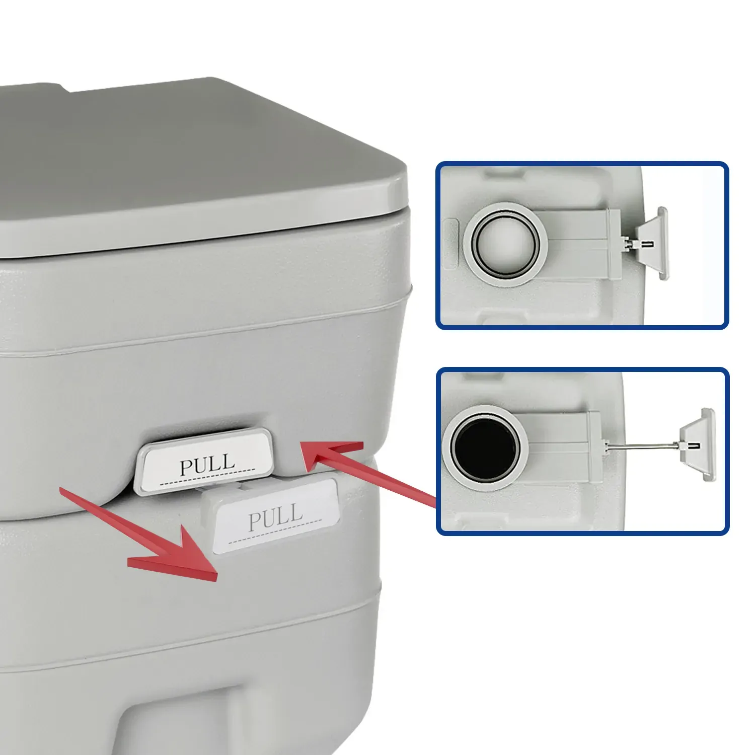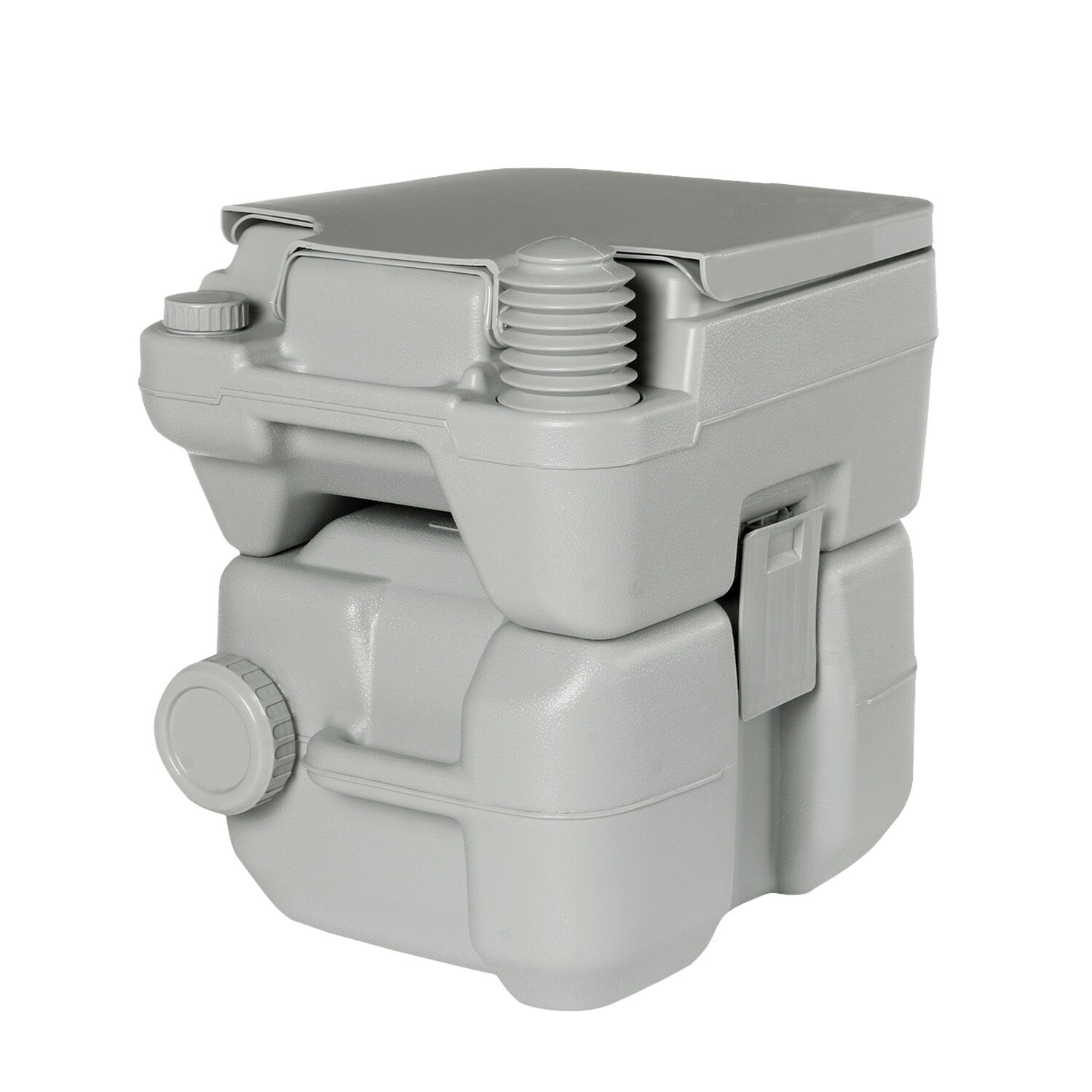 The user-friendly press flush pump lets you enjoy a hassle-free experience that rivals your home bathroom. Just press the pump, and let the powerful flushing mechanism do the rest. No need to worry about frequent emptying. This portable toilet boasts a generous 20-litre waste tank capacity, allowing for extended use without interruptions. Built to withstand the toughest outdoor conditions, this portable toilet is crafted with durable PE and ABS materials. Moreover, the double-sealed drain valve ensures a secure and odour-free operation, keeping any unwanted smells at bay.