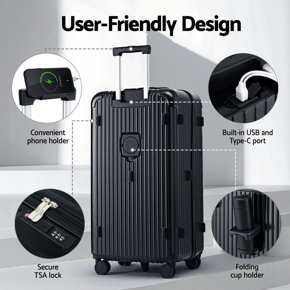 Wanderlite Trunk Luggage makes packing a dream, not a chore. With its innovative 3/7 split compartment, you'll conquer clutter, while built-in USB & Type-C ports keep you charged on the go. Glide effortlessly with reinforced 360�� spinner wheels and rest easy knowing your gear is safe thanks to the TSA lock and durable ABS shell. Plus, a hidden wet compartment keeps everything fresh.