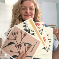 $31.45These are made from 70% cellulose (wood pulp) and 30% cotton and measure 20cms x 17cms. They come as a set of 5 patterns, all more cheerful than the next!