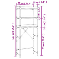$88.34This 3-tier washing machine shelf is a perfect solution to create extra storage spaces for an overcrowded bathroom or laundry room. Durable material: The engineered wood is of exceptional quality with smooth surface and also features strength, stability and resistance to moisture. Made of engineered wood, the bathroom shelf is easy to clean.Ample storage space: The bathroom storage features 3 shelves, offering ample space to easily hold your essential cleaning supplies such as soap, laundry detergent, fabric softener, and more.Space-saving design: The bathroom organiser is designed to be placed above the washing machine or toilet, fitting well in small spaces and making it ideal for small bathrooms and laundry rooms.Adjustable feet: The adjustable feet with plastic pads keep the toilet stand balanced on uneven ground and increase stability.Metal frame: The metal frame adds an industrial style to your interior while ensuring durability and stability. Warning:To prevent it being overturned, this product must be used with the provided wall attachment device. Good to know:Screws and plugs for inside the wall are not included. We advise to find and use screws and plugs suitable specifically for your walls. If you're not sure, you can consult with a professional. Please read and follow each step of the instructions.