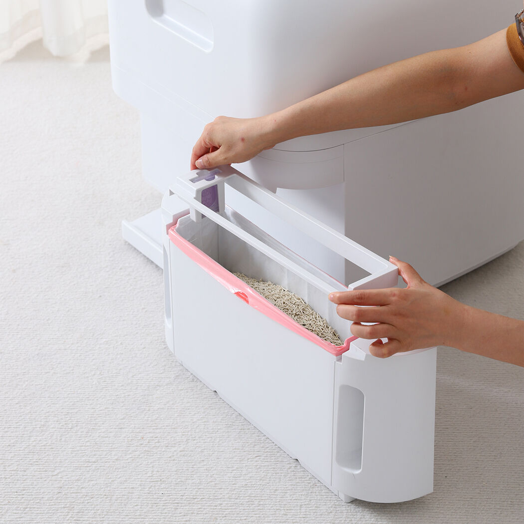 Tired of cleaning cat poo? An automatic litter box is for you. Connect it to power. Turn it on. Watch it scoop out poo into the back bin. UV disinfecting when your cat isn’t inside.