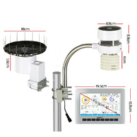 $499.40Keep on top of the weather with a top-of-the-line Weather Station from Devanti. With so many amazing features and tracking capacities, the Devanti Weather Station delivers a comprehensive study of the weather and climate. Its high quality 7-inch colour display shows a variety of metrics including wind speed and direction, relative humidity, UV index and light levels, rainfall data, and many other measurements for a complete picture of your local weather. You can adjust the backlight to light or dark, so you can see all your data at a glance. Store your data in three ways: on the Cloud, internally, or on a TF card. Monitor your data wirelessly from the weather app on your phone or view the data from four support websites: Weather Underground, Weather Cloud, WOW and Eco Witt. Set independent alarms to alert you when various measurements reach high or low extremes, such as temperature, humidity, wind or rain rate. The Devanti Weather Station also includes a set of stainless-steel bird spikes to discourage birds from landing on the unit. Whether you’re interested in the weather indoors or outdoors, you can get more detailed weather reports of your surroundings with a Devanti Weather Station. Be prepared no matter the forecast.
