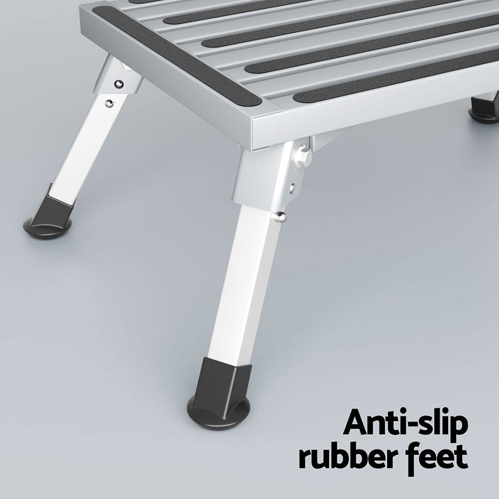 Make your travel more convenient with our Weisshorn RV Folding Step Stool. Made from lightweight aluminium construction, the step platform provides extra stability with non-slip gripper strips, non-slip rubber feet, and free-lock legs. The step folds down easily to 7cm in height, so you can easily slip it into any storage space. Our step is suitable for a wide variety of vehicles, so you can easily get into your RV, trailer, truck or SUV. For safety and convenience, our steps are highly recommended for camping or moving things outdoors. Have a Weisshorn Caravan Step at the ready on your next camping trip!