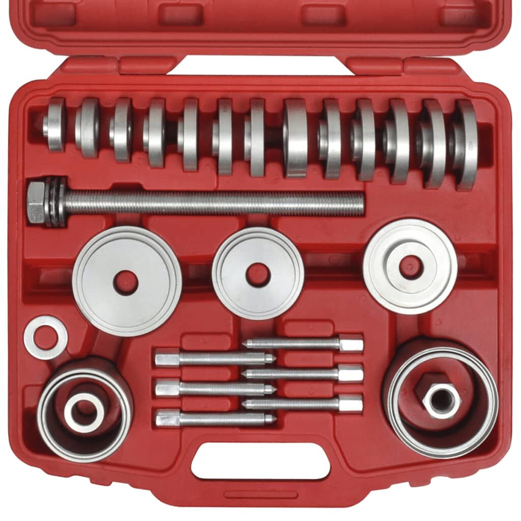 NOW $144.14This wheel bearing removal and installation tool set will be a great choice for the fast and effective removal and installation of wheel bearings on front-wheel drive vehicles. It makes assembly quite easy, as it eliminates the need to remove the steering knuckle and strut. Made of high-quality material, this wheel bearing removal & installation tool set is very durable. The kit is delivered in a blow-moulded carrying case for easy storage and transport.