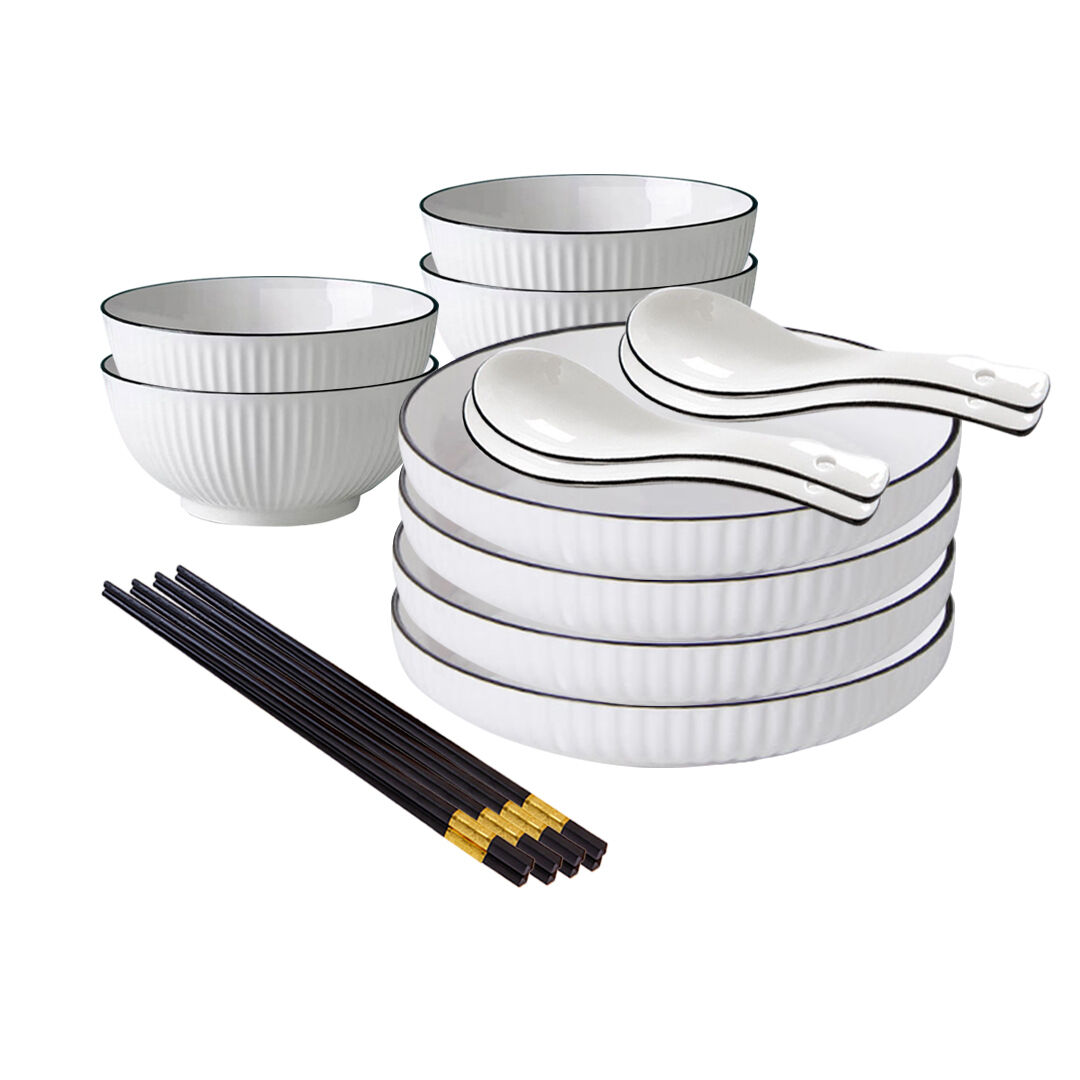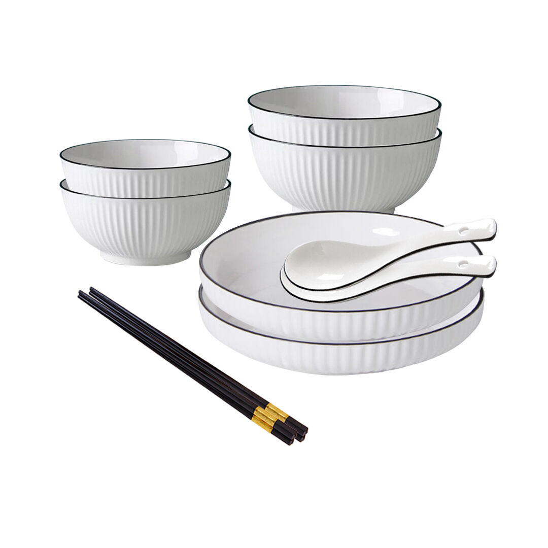 • 1X 4 pcs White Ceramic Dinnerware Set (2 Bowls, 2 Plates, 2 Spoons, 2 Pairs of Chopsticks)