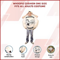 Youll be sure to leave a memorable impression when you appear at the party dressed as a walking-talking Whoopie Cushion! This fun Whoopie Cushion Costume is adult-sized, easy to slip on and comfortable to wear. There are generous-sized slots for your arms so you are not confined in the least.