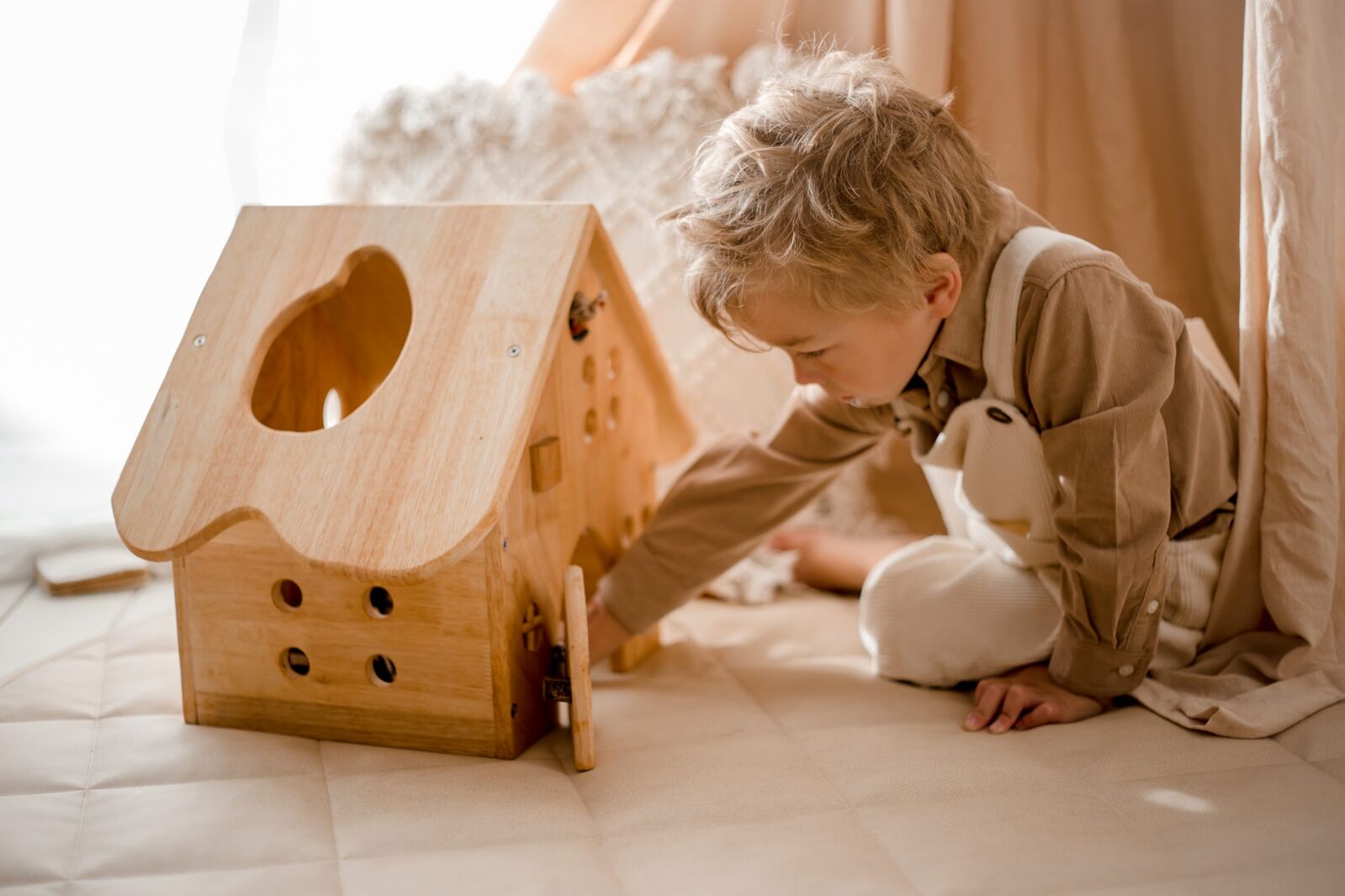 This beautifully made wooden barn house is perfect for pretend play. It is a signature piece in any setting. The house features a good size and a solid structure, easy to be set up perfect for all your pretend play experiences. They are open ended toys which provide children with the perfect opportunity to explore their imaginative skills and can be added to any play space.