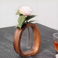 Wooden Glass Hydroponic Vase Minimalist Desktop Flower Vase for Water Plants Blooms