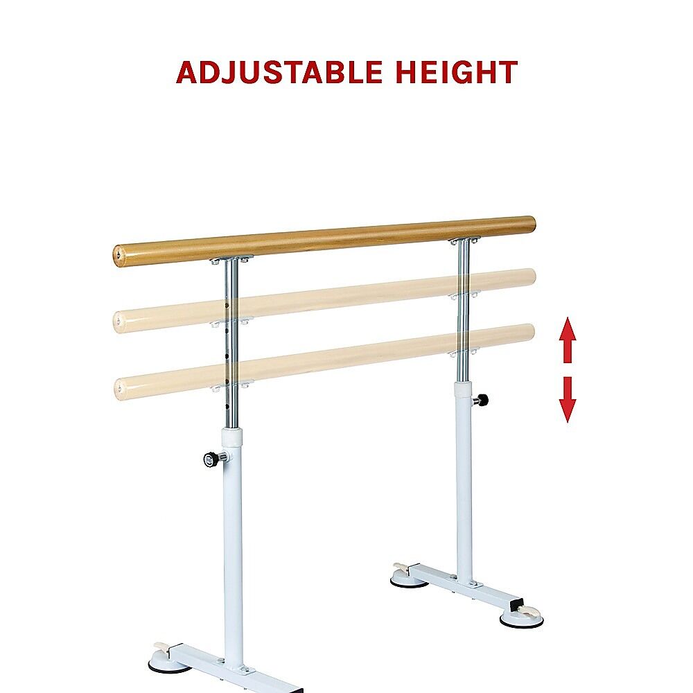 With a weight capacity of 200 kilogrammes, this barre can accommodate dancers of all sizes. Its seven-level adjustable height allows you to customise it for a wide range of users. No worries about slippage. With four large suction cups, the base will remain firmly in place. When you're done, simply unlock the suction cups and stow it away if needed. Make sure you install it on a smooth surface to enable the suction cups to work. It's easy to install and easy to move, making it the perfect accessory for your home gym. Don't miss out on this quality portable barre. Order yours today!