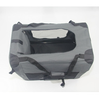 Our Dog Crate boasts sturdy construction, crafted from 600D polyester for heightened durability. Featuring mesh windows on every panel, it ensures superior ventilation, while a comfortable floor mat enhances your pet's comfort. With a generously-sized door for easy access and a convenient accessory bag on the side for storing essentials, our crate is designed for practicality.
