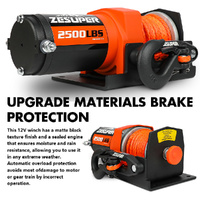 | Both wireless and wired remote control options to suit your needs,providing double coverage for your ATV UTV and 4WD. IP66 waterproof and advanced 500A solenoid.Copper-cored control box reduces the risk of motor damage. 4.8MM X 9.2M synthetic rope has better ductility, outperforms steels snap hazards,avoiding the danger of kinetic energy release. Triple-stage gears multiply torque exponentially for heavy-load.Auto-brake system locks loads during power failures hold the load to ensure the safety of you and your belongings. IN THE BOX: 1x 2500LBS winch 1x fairlead 1x wired remote control 1x wireless remote control 1x control box 1x heavy duty hook 1x set of stainless fitting bolts 1x user manual 1x mounting plate |