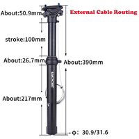 ZOOM SPD-801 Dropper Seatpost Adjustable Height via Thumb Remote Lever - External Cable 30.9 Diameter 100mm Travel