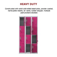 The unit has 12 individual locker compartments stacked in a 3 x 4 grid. Each locker provides ample space for personal items and can hold up to 30 kg. Built-in ventilations slits keep the stored items from smelling musty. Users may also customise their locker with a name tag or label in the designated slot provided. This comes comes with standard locks (with 2 keys each) to ensure safety of your belongings.