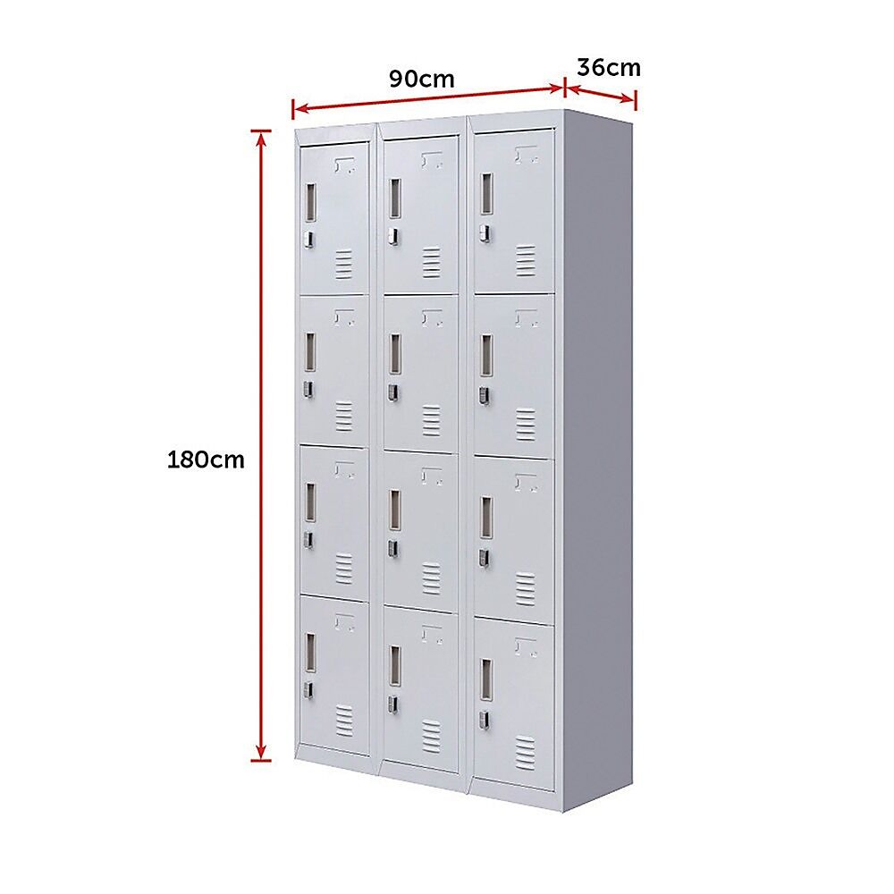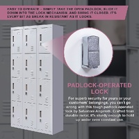 The unit has 12 individual locker compartments stacked in a 3 x 4 grid. Each locker provides ample space for personal items and can hold up to 30 kg. Built-in ventilations slits keep the stored items from smelling musty. Users may also customise their locker with a name tag or label in the designated slot provided. This comes comes with padlock-operated lock to ensure safety of your belongings.