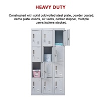 The unit has 12 individual locker compartments stacked in a 3 x 4 grid. Each locker provides ample space for personal items and can hold up to 30 kg. Built-in ventilations slits keep the stored items from smelling musty. Users may also customise their locker with a name tag or label in the designated slot provided. This comes comes with standard locks (with 2 keys each) to ensure safety of your belongings.