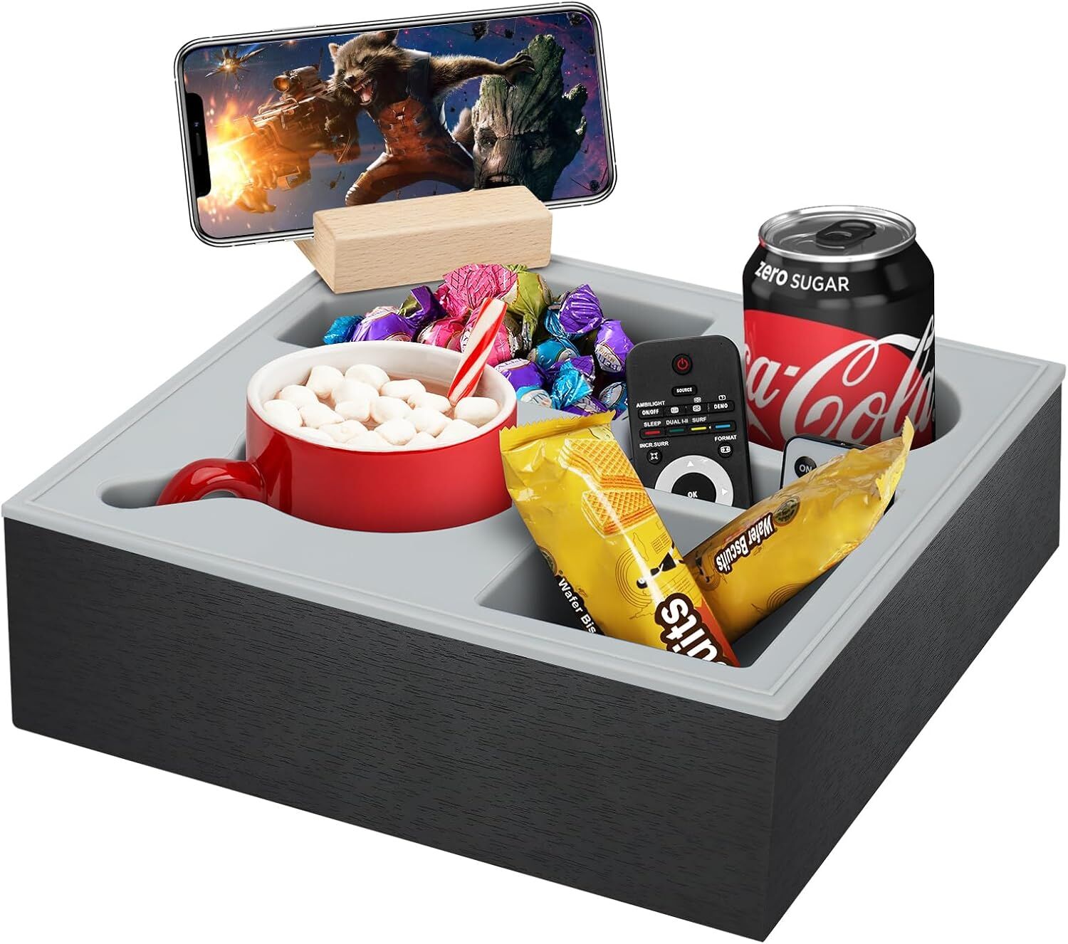 $47.49Wooden Couch Cup Holder Tray with Soft Silicone & Rotatable Phone Holder for Storaging Drinks & Snacks
