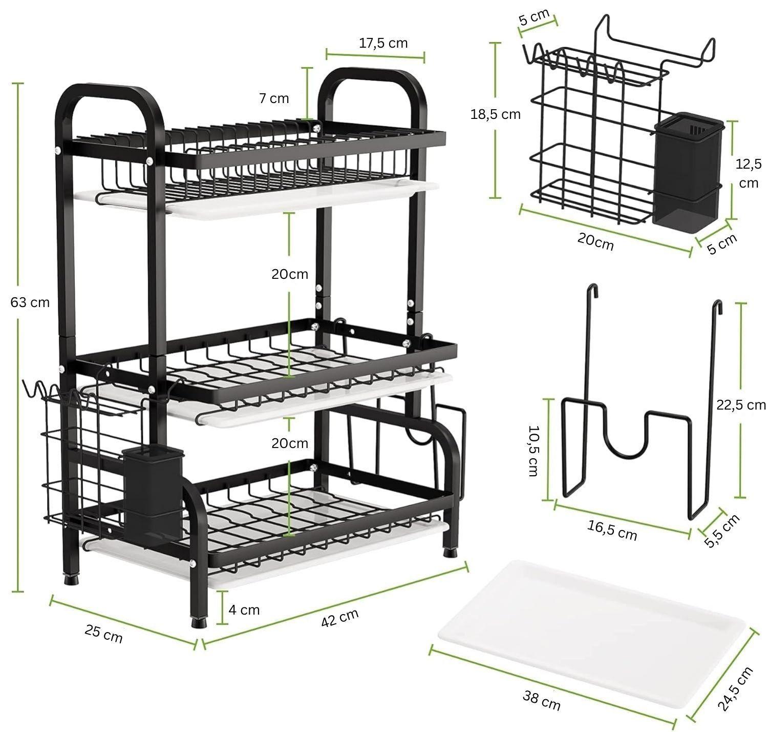 $61.74Dish Drying Rack 3 Tier Large Capacity Kitchen Storage with Utensil and Cutting Board Holder